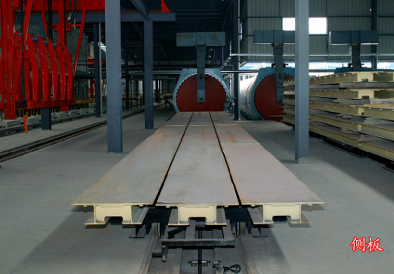 經(jīng)過翻轉(zhuǎn)吊具脫模后,側(cè)板承載加氣磚,切割進(jìn)釜蒸養(yǎng)直至包裝工段。